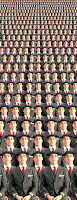 El mismo tono risible usa Pueyo en Lehendakaritza, fotografía manipulada que nos introduce en una mareante perspectiva forzada. El individuo multiplicado sin límites, tocado a la usanza vasca, aparte de la comicidad que suscita en nosotros por el gesto severo y el porte seguro, podría cuanto menos agitar el temperamento de los más sensibles a las globalizaciones varias. Desde su perspectiva de navarro, con el conflicto vasco nada más poner el pie en la calle, el artista demuestra un tanto de ausentamiento, de distancia, que es de agradecer. No hay nada como reír desde dentro las falsas glorias, hasta las pretendidas globalizaciones con fronteras en las que todos deberían tener el mismo discurso y poblar sus mentes con los mismos teoremas de la salvación.